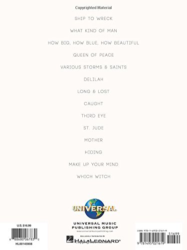 (Piano/Vocal/Guitar Artist Songbook). This songbook features all 11 tracks from the British singer/songwriter’s 2015 album, plus 3 special deluxe edition bonus songs: Caught * Delilah * Hiding * How Big, How Blue, How Beautiful * Long & Lost * Make up Your Mind * Mother * Queen of Peace * St. Jude * Ship to Wreck * Third Eye * Various Storms and Saints * What Kind of Man * Which Witch.