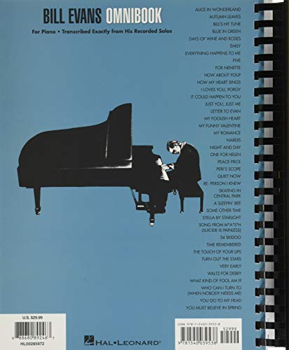 (Jazz Transcriptions). The ultimate collection for jazz keyboardists to learn 40 Evans classics with exact note-for-note transcriptions. Includes: Alice in Wonderland * Autumn Leaves * Bill’s Hit Tune * Blue in Green * Days of Wine and Roses * Emily * Everything Happens to Me * Five * For Nenette * How About You? * How My Heart Sings * I Loves You, Porgy * It Could Happen to You * Just You, Just Me * Letter to Evan * My Foolish Heart * My Funny Valentine * My Romance * Nardis * Night and Day * One for Helen * Peace Piece * Peri’s Scope * Quiet Now * Re: Person I Knew * Skating in Central Park * A Sleepin’ Bee * Some Other Time * Stella by Starlight * Song from M*A*S*H (Suicide Is Painless) * 34 Skidoo * Time Remembered * The Touch of Your Lips * Turn Out the Stars * Very Early * Waltz for Debby * What Kind of Fool Am I? * Who Can I Turn to (When Nobody Needs Me) * You Go to My Head * You Must Believe in Spring * and more. Spiral bound.