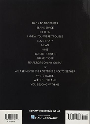 (Piano Solo Personality). This updated second edition features 15 of Taylor’s biggest hits from her self-titled first album all the way through her pop breakthrough album, 1989 . Includes: Back to December * Blank Space * Fifteen * I Knew You Were Trouble * Love Story * Mean * Mine * Picture to Burn * Shake It Off * Teardrops on My Guitar * 22 * We Are Never Ever Getting Back Together * White Horse * Wildest Dreams * You Belong with Me.