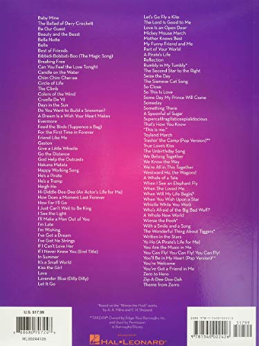(Instrumental Folio). If you play an instrument and you’re a Disney fan, you’ll love this collection of 101 favorites to learn and play! Songs include: Beauty and the Beast * Can You Feel the Love Tonight * A Dream Is a Wish Your Heart Makes * Evermore * Go the Distance * He’s a Pirate * I See the Light * Kiss the Girl * Let It Go * Mickey Mouse March * Reflection * A Spoonful of Sugar * True Love’s Kiss * We’re All in This Together * When You Wish upon a Star * A Whole New World * You’ve Got a Friend in Me * Zip-A-Dee-Doo-Dah * and more.