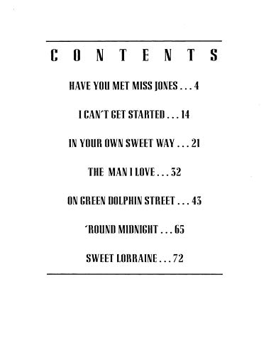 Titles are: The Man I Love * I Can’t Get Started * Sweet Lorraine * Have You Met Miss Jones * ‘Round Midnight * On Green Dolphin Street * In Your Own Sweet Way.