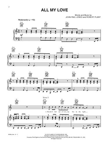 Led Zeppelin fans who play the piano know that certain songs by the legendary band are particularly well-suited to be played on keyboard instruments. Some of these are “All My Love,” “No Quarter,” “Stairway to Heaven,” “Your Time Is Gonna Come,” and more—and they’re all here in this collectible sheet music anthology. Also included are a variety of the band’s most popular songs from seven of their albums. This collection of 20 arrangements is the ultimate vehicle for pianists to explore the music of the greatest rock band of all time! Titles: All My Love * The Battle of Evermore * Black Dog * Carouselambra * The Crunge * Fool in the Rain * Going to California * Good Times Bad Times * Heartbreaker * Kashmir * No Quarter * The Ocean * The Rain Song * Rock and Roll * Since I’ve Been Loving You * Stairway to Heaven * Thank You * Trampled Under Foot * You Shook Me * Your Time Is Gonna Come.