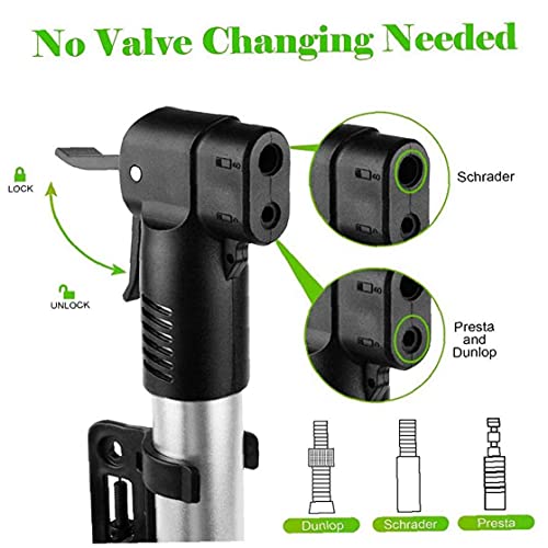 Mini fietspomp het overschakelen zonder adapter. Compatibel met gemeenschappelijke Presta en Schrader ventielen. Het worden opgeblazen voor racefietsen en mountainbikes. Draagbare fietspomp is licht en het rijwielframe worden bevestigd of in een rugzak.