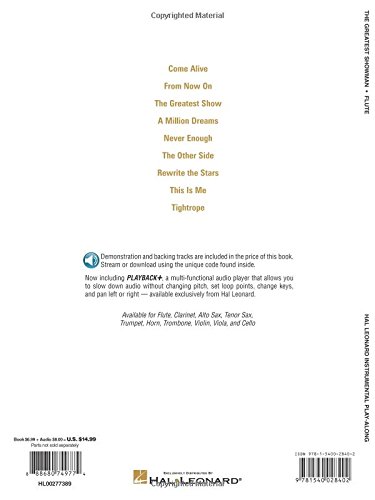 (Instrumental Play-Along). 9 songs from this blockbuster hit movie musical are included in this collection for instrumentalists. Each book features online access to audio demonstration and play-along tracks for download or streaming to help you hear how the song should sound and then play along and sound like a pro! Songs include: Come Alive * From Now On * The Greatest Show * A Million Dreams * Never Enough * The Other Side * Rewrite the Stars * This Is Me * Tightrope.