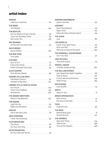 For beginning musicians, Alfred’s Easy series is the fast track to developing a repertoire of well-known and fun-to-play songs, while more experienced players will find an excellent resource of favorite songs. The Easy Hits Guitar TAB format provides melody in notation and TAB, chords, lyrics, and any integral hook parts—plus suggested strum and fingerpicking patterns. This Classic Rock edition features songs spanning three decades from such artists as Chicago, The Rolling Stones, Fleetwood Mac, The Doors, Bruce Springsteen, Crosby, Stills, Nash and Young, and many more! Titles: 25 or 6 to 4 (Chicago) * Baby It’s You (Smith) * Behind Blue Eyes (The Who) * Born to Run (Bruce Springsteen) * Can’t You See (The Marshall Tucker Band) * The Chain (Fleetwood Mac) * The Circle Game (Joni Mitchell) * Colour My World (Chicago) * Dancing in the Dark (Bruce Springsteen) * Do You Feel Like We Do (Peter Frampton) * Do You Want to Know a Secret (The Beatles) * Don’t Stop Believin’ (Journey) * Feelin’ Stronger Every Day (Chicago) * Go Your Own Way (Fleetwood Mac) * Good Times Bad Times (Led Zeppelin) * Hit Me with Your Best Shot (Pat Benatar) * Hold the Line (Toto) * Hold Your Head Up (Argent) * I Hear You Knocking (Dave Edmunds) * I Saw Her Standing There (The Beatles) * Let’s Spend the Night Together (The Rolling Stones) * The Letter (The Box Tops) * Lido Shuffle (Boz Scaggs) * Life in the Fast Lane (The Eagles) * Light My Fire (The Doors) * Lola (The Kinks) * Marrakesh Express (Crosby, Stills and Nash) * Only Women Bleed (Alice Cooper) * Open Arms (Journey) * Our House (Crosby, Stills, Nash and Young) * Paint It, Black (The Rolling Stones) * Pinball Wizard (The Who) * Riders on the Storm (The Doors) * Rock and Roll (Led Zeppelin) * (I Can’t Get No) Satisfaction (The Rolling Stones) * Separate Ways (Worlds Apart) (Journey) * She Loves You (The Beatles) * She’s Not There (The Zombies) * Space Oddity (David Bowie) * Spirit in the Sky (Norman Greenbaum) * Stairway to Heaven (Led