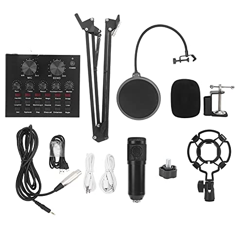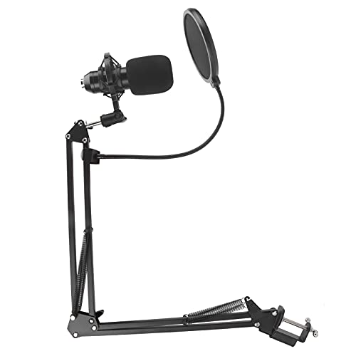 De microfoon is condensator, uitgerust met een schokbevestiging en filter, het geproduceerde geluid is helder en geen geluid.